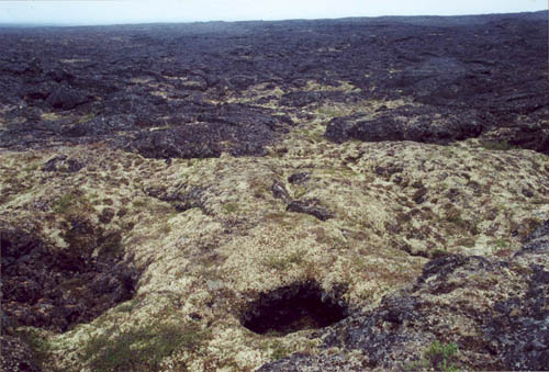 Lichen communities (comm. 74) on recent lava flows, complexed with unvegetated lava; in mosaic with areas not covered by lava (G3.3, comm. 75). Seward Peninsula, Subzone E.