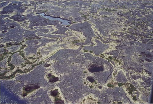 Aerial photo of lava complex near Imuruk Lake, Seward Peninsula, Alaska. (Photo: D.A. Walker.)