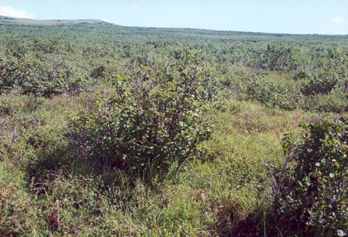 Low-shrub tundra (alder savannah), north of Kigluaik Mountains, Seward Peninsula, Alaska. (Photo: D.A. Walker.)