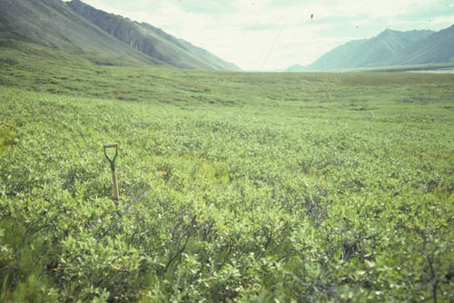Low-shrub tundra (willow), Atigun River, Brooks Range, Alaska. (Photo: D.A. Walker.)